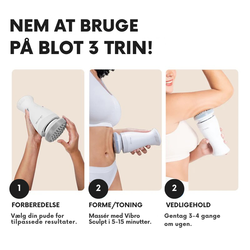 BodyTight 1.0 er utrolig nem at bruge og passer perfekt ind i en travl hverdag. Du skal blot vælge indstilling, massere området i få minutter og lade teknologien gøre arbejdet – nemt, hurtigt og effektivt derhjemme.